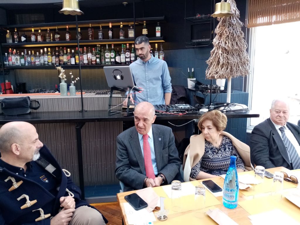 Ενόσω η γιορταστική, ζεστή ατμόσφαιρα κυριαρχούσε στο χώρο της αίθουσας του γεύματος, με τις μυρωδιές των εξωτικών μπαχαρικών στα φαγητά να κάνουν μεθυστική μείξη με τα λευκά και κόκκινα κρασιά, εμείς “αράξαμε” για λίγο στο τραπέζι της παρέας του ευγενέστατου Προέδρου της ΕΑΑΝ ΝΔ Ελλάδος, Αντιναυάρχου ε.α. κ. Δημητρίου Μποϊλέ.