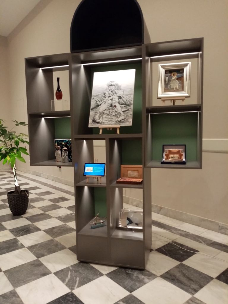 Εν συνεχεία, οι υψηλοί προσκεκλημένοι μετέβησαν στην αίθουσα των εκθεμάτων όπου είχαν την ευκαιρία να θαυμάσουν τα Διπλωματικά Δώρα από κοντά.