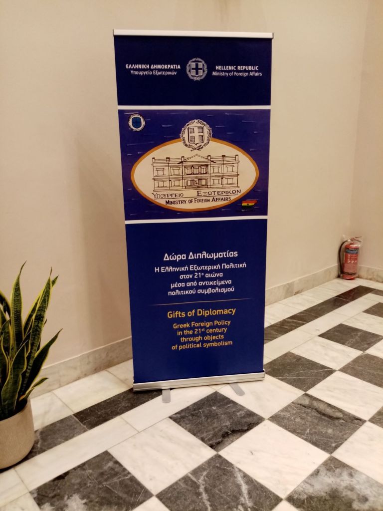Μου επιτρέπετε να σας καλωσορίσω στην έκθεση «Δώρα Διπλωματίας, η εξωτερική πολιτική στον 21ο αιώνα μέσα από αντικείμενα πολιτικού συμβολισμού».