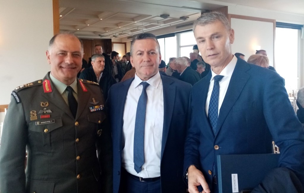 φωτ. από αριστερά τω βλέποντι, ο κ. Νικόλαος Μούρτης, έχοντας δίπλα του τον Υποστράτηγο Γεώργιο Μανουρά και από δεξιά τω βλέποντι, ο κ. Αλέξανδρος Παλατιανός
