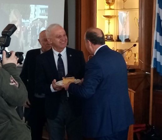 φωτ. ο κ. Μάκης Οικονομίδης, Πρόεδρος του Παγκύπριου Συνδέσμου Εφέδρων Καταδρομέων παραλαμβάνει από τον Πρόεδρο του Συνδέσμου κ. Παλατιανό την Βασιλόπιτα