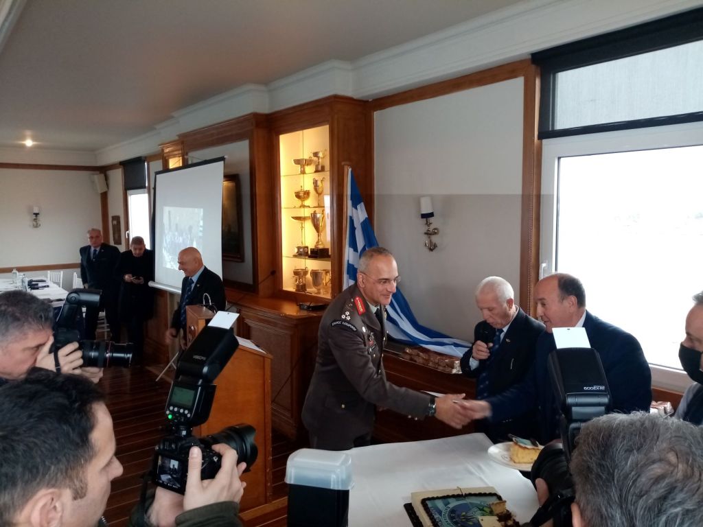 φωτ. ο Διοικητής της Διοίκησης Ειδικού Πολέμου Αντιστράτηγος Δημήτριος Χούπης, παραλαμβάνει από τον Πρόεδρο του Συνδέσμου κ. Παλατιανό την Βασιλόπιτα