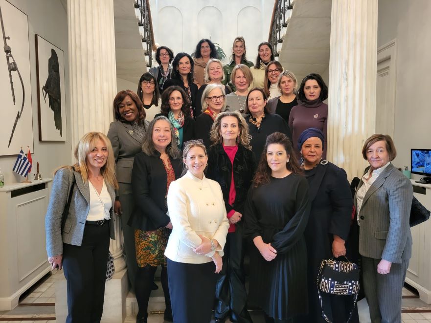Συγκεκριμένα παρευρέθηκαν οι εξής: η Πρέσβης της Αλβανίας, κα Luela Hajdaraga, η Πρέσβης της Αυστρίας, κα Hermine Poppeller, η Πρέσβης του Βελγίου, κα Francoise Gustin, η Πρέσβης της Βοσνίας Ερζεγοβίνης, κα Milica Ristovic, η Πρέσβης της Χιλής, κα Marisol Parez, η Πρέσβης της Εσθονίας, κα Karin Rannu, η Πρέσβης της Ιρλανδίας, κα Iseult Fitzgerald, η Πρέσβης της Ιταλίας, κα Patrizia Falcinelli, η Πρέσβης της Λετονίας, κα Ieva Briede, η Πρέσβης του Λουξεμβούργου, κα Elisabeth Cardoso, η Πρέσβης του Μαυροβουνίου, κα Ana Vukadinovic, η Πρέσβης της Νιγηρίας, κα Nimi Akinkugbe, η Πρέσβης της Βόρειας Μακεδονίας, κα Lidija Boshkovska, η Πρέσβης του Παναμά, κα Julie Lymberopoulos, η Πρέσβης της Πορτογαλίας, κα Helena Paiva, η Πρέσβης της Σλοβακίας, κα Marcela Hanusova, η Πρέσβης της Σλοβενίας, κα Tamara Weingerl Pozar, η Πρέσβης της Νότιας Αφρικής, κα Beryl Sisulu, η Πρέσβης του Καναδά, κα Karine Asselin και η Πρέσβης της Λιθουανίας, κα Lina Skerstonaite. Στο γεύμα παρευρέθηκε επίσης, η Διευθύντρια Διεθνών Εμπορικών Σχέσεων του ΕΒΕΑ, κα Ελένη Φώτη.