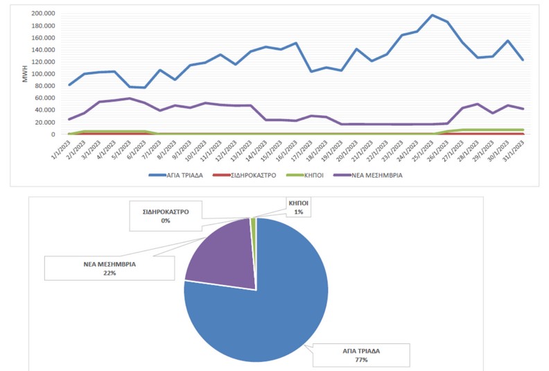 πηγή: «Δελτίο Ενεργειακής Ανάλυσης» ΙΕΝΕ, τ. Νο 305 – Μηνιαία Ανάλυση της Ελληνικής Ενεργειακής Αγοράς, Ιανουάριος 2023.