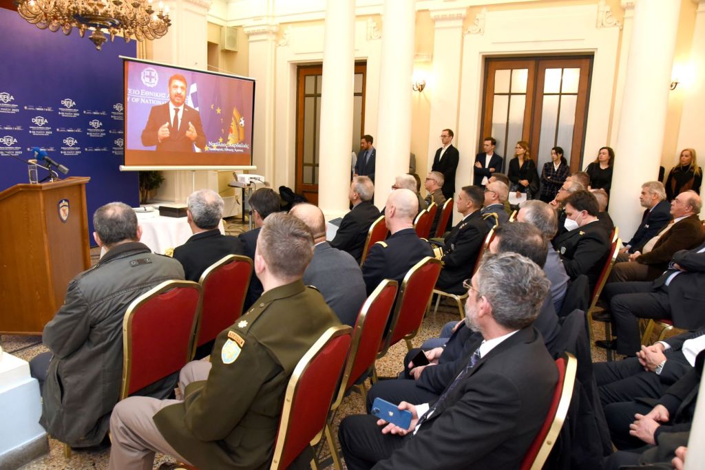 Στην εκδήλωση έστειλε βιντεοσκοπημένη ομιλία ο υφυπουργός Εθνικής Άμυνας Νίκος Χαρδαλιάς – λόγω ανειλημμένων υποχρεώσεων δεν μπόρεσε να έχει φυσική παρουσία – ενώ χαιρετισμό απηύθυνε ο ΓΓ του ΥΠΕΘΑ Αντώνης Οικονόμου εκφράζοντας και οι δύο την στήριξή τους στον ΣΕΚΠΥ και στην εγχώρια αμυντική βιομηχανία.
