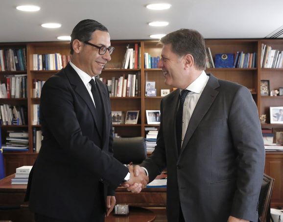 Ο Αναπληρωτής Υπουργός Εξωτερικών, Μιλτιάδης Βαρβιτσιώτης, υποδέχθηκε σήμερα Τρίτη 14 Μαρτίου, τον Υπουργό Εξωτερικών της Κυπριακής Δημοκρατίας, Κωνσταντίνο Κόμπο.