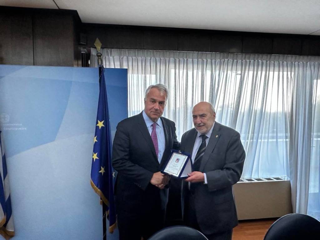 Ακολούθως, ο Πρόεδρος του ΣΕΑΝ Αθηνών επέδωσε, εκ μέρους του ΔΣ, αναμνηστική τιμητική πλακέτα με το έμβλημα του ΣΕΑΝ Αθηνών στον Υπουργό Εσωτερικών.