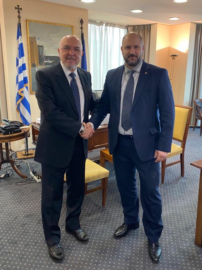Ο Υφυπουργός Εξωτερικών για την Οικονομική Διπλωματία και την Εξωστρέφεια Κώστας Φραγκογιάννης συναντήθηκε σήμερα, Πέμπτη 6 Απριλίου 2023, με τον Υπουργό Ενέργειας της Μολδαβίας Victor Parlicov, ο οποίος πραγματοποιεί επίσκεψη εργασίας στην Αθήνα.