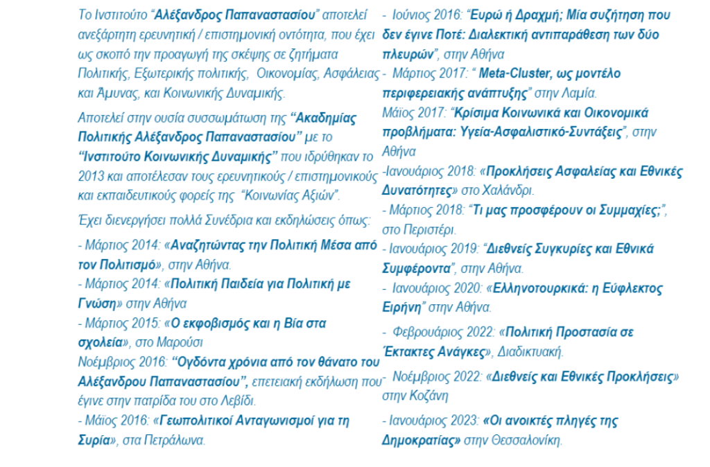 Λίγα λόγια για το Ινστιτούτο Αλέξανδρος Παπαναστασίου (ΙΝ.Α.Π.)