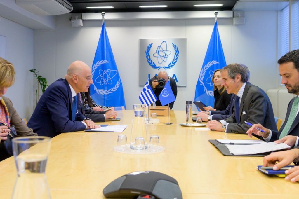 Ολοκληρώνοντας την επίσκεψή του στη Βιέννη, ο Έλληνας ΥΠΕΞ συναντήθηκε και με τον Γενικό Διευθυντή του Διεθνούς Οργανισμού Ατομικής Ενέργειας (ΔΟΑΕ) Rafael M.Grossi με τον οποίο είχαν μια εποικοδομητική συζήτηση για τους τρόπους διασφάλισης της πυρηνικής προστασίας και ασφάλειας.