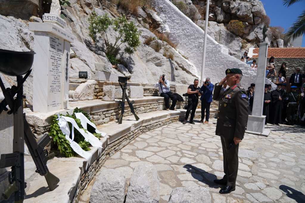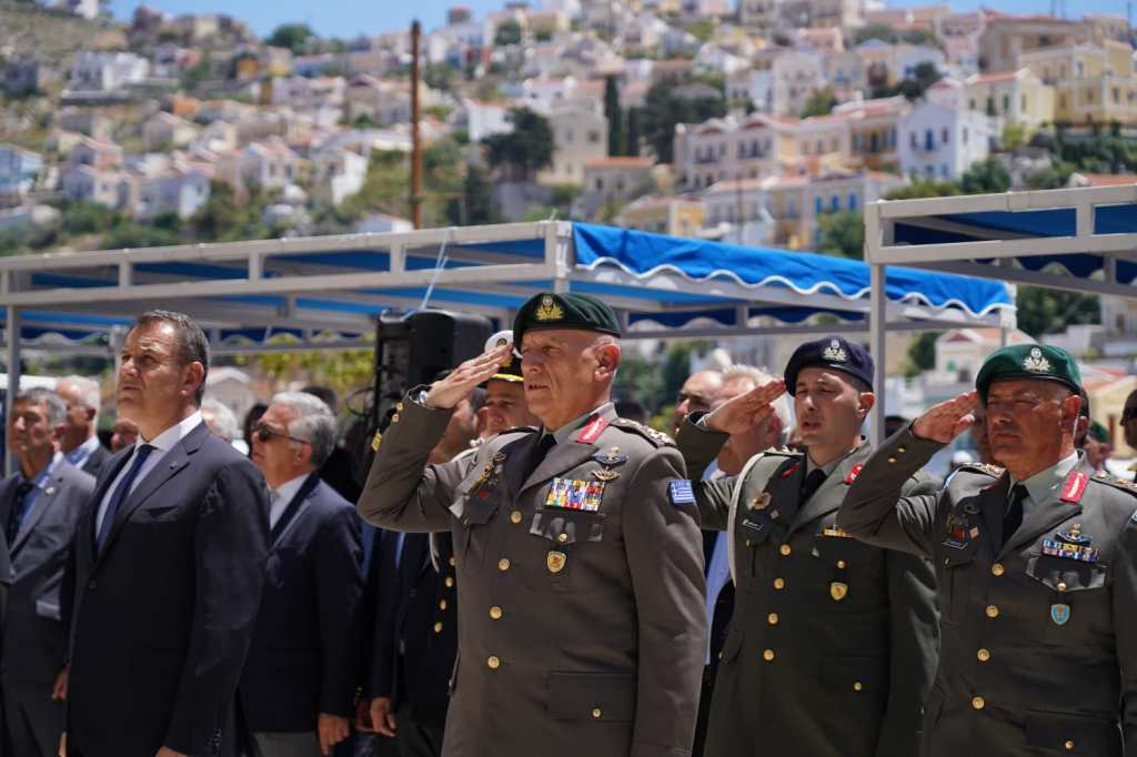 Τόνισε ότι για την απελευθέρωση της Σύμης και των Δωδεκανήσων, οι αγώνες και η αυτοθυσία των κατοίκων του νησιού αποτέλεσαν την τρανή απόδειξη ότι τίποτα δεν χαρίστηκε γι’ αυτή την ελευθερία. Ιδιαίτερη μνεία έκανε στο γεγονός ότι οι αγώνες αυτοί αποτελούν παράδειγμα και ιστορική παρακαταθήκη για τις νεότερες γενιές, ώστε η Πατρίδα να παραμείνει ελεύθερη εις το διηνεκές. Διαβεβαίωσε τους παρευρισκόμενους ότι οι Ένοπλες Δυνάμεις αποτελούν τους εγγυητές της εθνικής κυριαρχίας και των κυριαρχικών δικαιωμάτων της Χώρας μας, έναντι οποιωνδήποτε εξωτερικών κινδύνων, εξασφαλίζοντας την ασφάλεια και σταθερότητα στην ευρύτερη περιοχή και καθιστώντας μας επίφοβο αντίπαλο για όσους μας προσδιορίζουν κατ’ αυτό τον τρόπο.