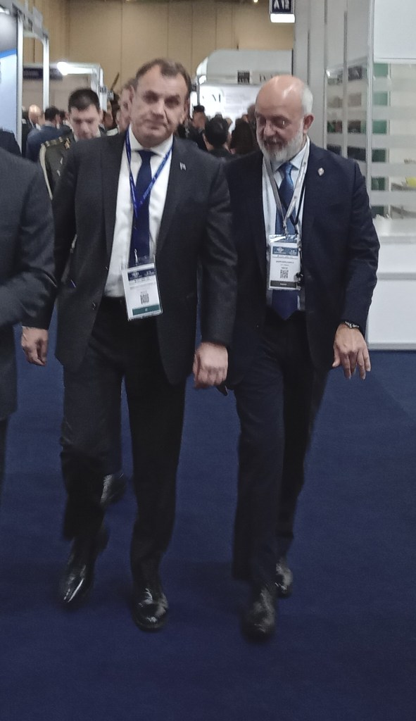 Στο περιθώριο των εγκαινίων, είχαμε την χαρά και την τιμή να συναντήσουμε στο περίπτερο του Συνδέσμου Ελλήνων Κατασκευαστών Αμυντικού Υλικού τον Πρόεδρο του ΣΕΚΠΥ κ.Τάσο Ροζολή.