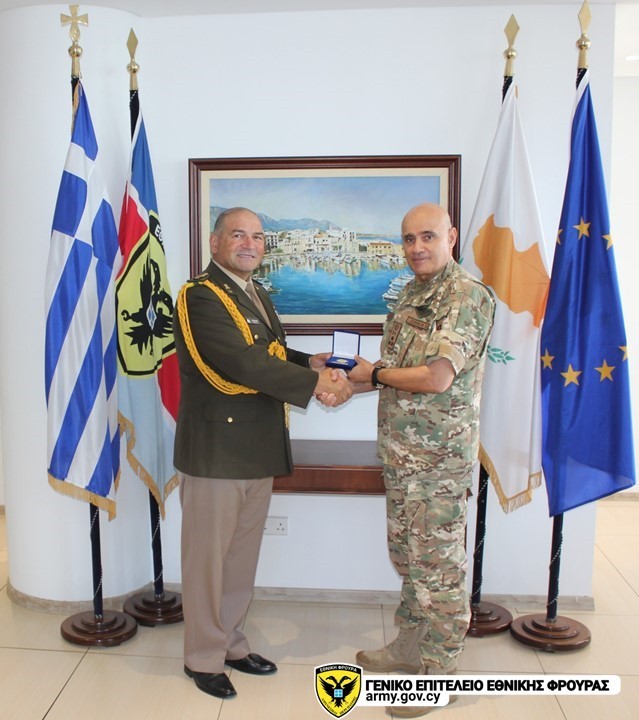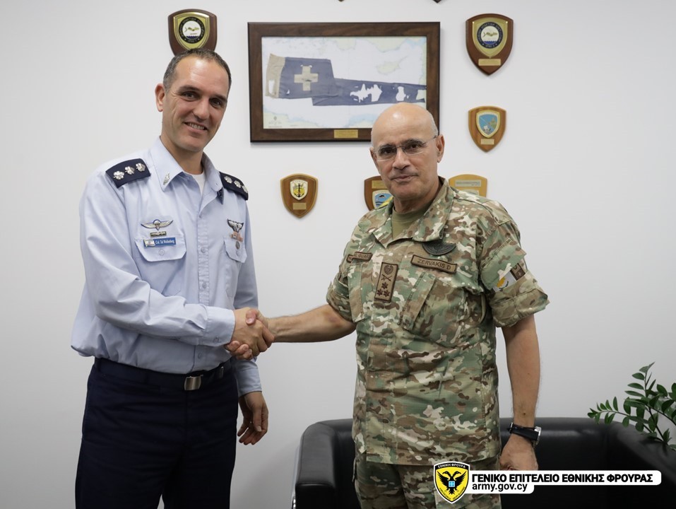 Ο Αρχηγός της Εθνικής Φρουράς, Αντιστράτηγος Δημόκριτος Ζερβάκης, στο πλαίσιο των επαφών του με υψηλόβαθμους Αξιωματικούς που παρευρέθηκαν στην Ημέρα Διακεκριμένων Επισκεπτών (DV-Day) της Άσκησης «ΑΡΓΟΝΑΥΤΗΣ-2023», είχε εθιμοτυπική συνάντηση την Πέμπτη, 18 Μαΐου 2023, στο Στρατηγείο του Γενικού Επιτελείου Εθνικής Φρουράς, με τον απερχόμενο Ακόλουθο Άμυνας (ΑΚΑΜ) της Αργεντινής στο Ισραήλ, με παράλληλη διαπίστευση στην Κυπριακή Δημοκρατία, Συνταγματάρχη Claudio Ceferino Gervigni. Κατά τη συνάντηση, συζητήθηκαν οι εξελίξεις στην περιοχή της Ανατολικής Μεσογείου, καθώς και θέματα κοινού ενδιαφέροντος. Ο Αρχηγός, ευχαρίστησε τον απερχόμενο ΑΚΑΜ για τη συνεργασία και του ευχήθηκε καλή συνέχεια.