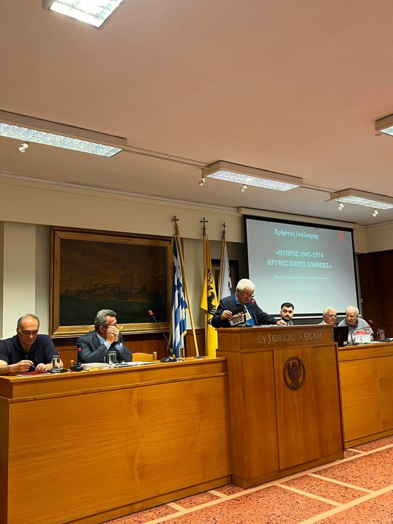 Το βιβλίο του εκπαιδευτικού Χρήστου Γκόλλιαρη με τίτλο «Κύπρος 1945-1974 Κρυφές Πικρές Αλήθειες» παρουσιάστηκε με επιτυχία την Πέμπτη 8 Ιουνίου 2023 στην αίθουσα εκδηλώσεων της Ευξείνου Λέσχης Θεσσαλονίκης.