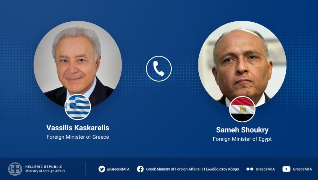 Ο Υπουργός Εξωτρικών Βασίλης Κασκαρέλης είχε σήμερα την πρώτη τηλεφωνική επικοινωνία με τον ΥΠΕΞ της Αιγύπτου Sameh Shoukry κατά την οποία επιβεβαιώθηκαν οι άριστες στρατηγικές σχέσεις Ελλάδος Αιγύπτου και συζητήθηκαν οι διεθνείς και περιφερειακές εξελίξεις. σύμφωνα με ανάρτηση του Υπουργείου Εξωτερικών στο twitter.
