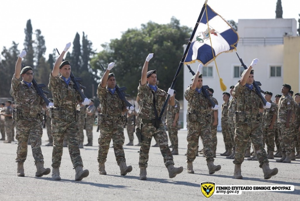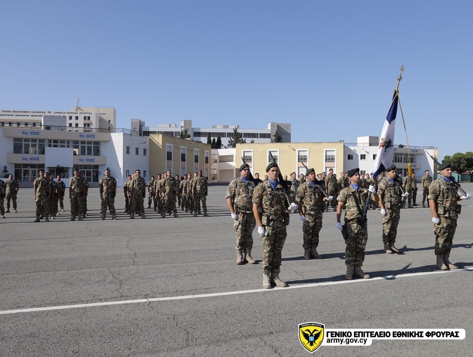 H τελετή διαβεβαίωσης των ανδρών Συμβασιούχων Οπλιτών (ΣΥΟΠ) της 13ης Εκπαιδευτικής Σειράς πραγματοποιήθηκε σήμερα Παρασκευή, 23 Ιουνίου 2023 στο ΚΕΝ Λάρνακας παρουσία των οικογενειών τους, του Βοηθού Επιτελάρχη της Εθνικής Φρουράς, Υποστράτηγου Θεόδωρου Λοΐζου και του Διοικητή της 1ης Μηχανοκίνητης Ταξιαρχίας, Ταξίαρχου Ιωάννη Γιαννακού.