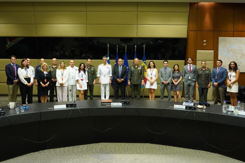 Στο πλαίσιο της ενημέρωσης της αντιπροσωπείας, ο Διευθυντής του Κλάδου Στρατηγικής – Πολιτικής – Αμυντικού Σχεδιασμού και Δυνατοτήτων του ΓΕΕΘΑ Υποπτέραρχος (ΕΑ) Απόστολος Μητσόπουλος παρουσίασε θέματα αμυντικής πολιτικής καθώς και τρεχουσών γεωπολιτικών εξελίξεων, και ακολούθησε συζήτηση.