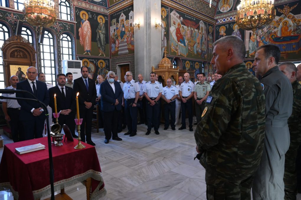 Tελετή έπαρσης της σημαίας σε μεσίστια θέση στο Υπουργείο Εθνικής Άμυνας και Επιμνημόσυνη Δέηση για την απώλεια ζωής των δύο Αξιωματικών της Πολεμικής Αεροπορίας, οι οποίοι επιχειρούσαν στην Εύβοια, για την κατάσβεση πυρκαγιάς πραγματοποιήθηκε σήμερα σε κλίμα συγκίνησης, σύμφωνα με ανακοίνωση του ΥΠΕΘΑ.
