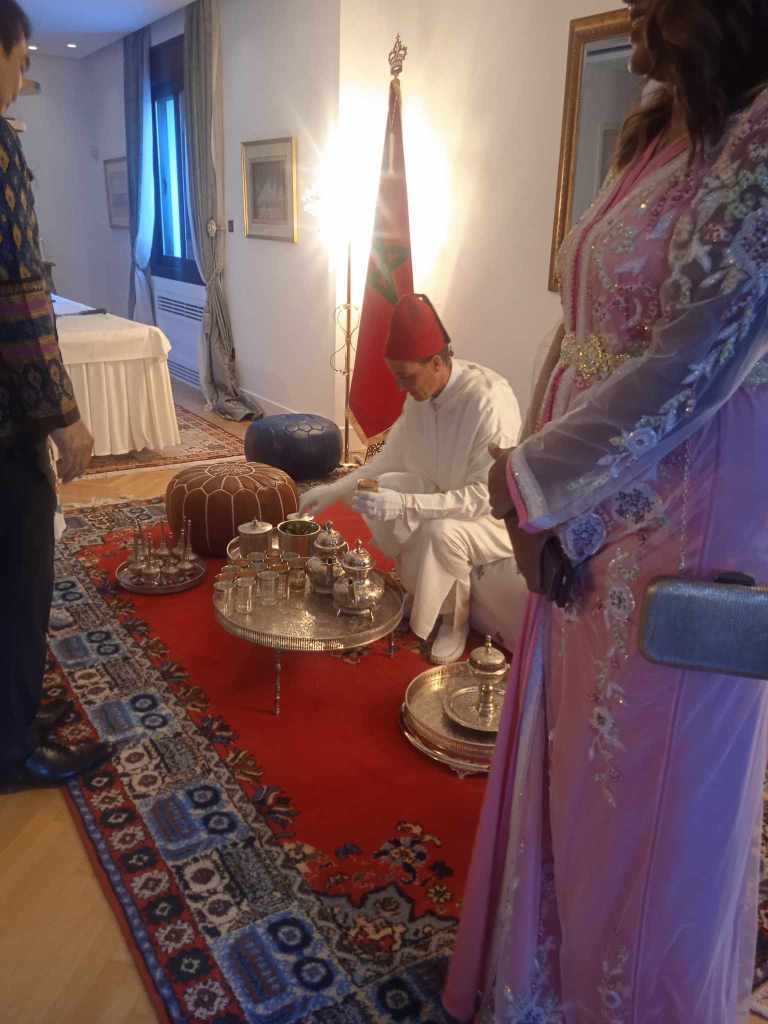 Δεξίωση παρέθεσε η Πρεσβεία του Μαρόκου στην Ελλάδα για τους Έλληνες φίλους της με την ευκαιρία της 24ης επετείου ενθρόνισης του Βασιλιά Μοχάμετ ΣΤ’ του Μαρόκου. Υπενθυμίζεται οτι ο Μονάρχης ανέλαβε την Βασιλεία του βορειο-αφρικανικού κράτους μετά τον θάνατο του πατέρα του Βασιλιά Χασάν Β’.