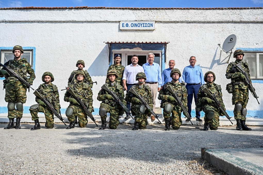 Ο Υφυπουργός Εθνικής Άμυνας Νικόλαος Χαρδαλιάς, πραγματοποίησε σήμερα, Κυριακή 27 Αυγούστου 2023, επισκέψεις στα Επιτηρητικά Φυλάκια (ΕΦ) «Οινουσσών» και «Παναγιάς», στην Περιφερειακή Ενότητα Χίου, συνοδευόμενος από τον Διοικητή της 96 Ανώτερης Διοίκησης Ταγμάτων Εθνοφυλακής, Ταξίαρχο Χαράλαμπο Αμπατζίδη.
