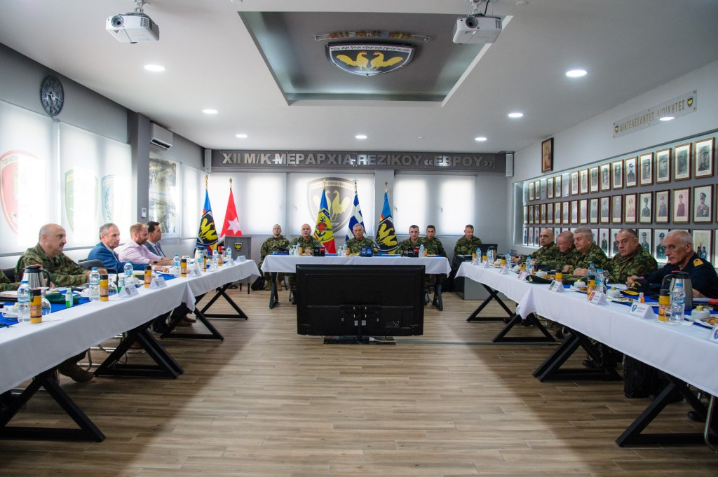 Στην συνέχεια συμμετείχε σε σύσκεψη στην έδρα της XII Μηχανοκίνητης Μεραρχίας Πεζικού παρουσία και εκπροσώπων αρμοδίων φορέων με τους οποίους οι Ένοπλες Δυνάμεις έχουν συνεργασία στο πλαίσιο αντιμετώπισης των προαναφερθέντων ζητημάτων. Κατά την διάρκειά της, ενημερώθηκε συνολικά για την επικρατούσα κατάσταση στην Περιοχή Ευθύνης του Δ΄ΣΣ και έδωσε συγκεκριμένες κατευθύνσεις για την εκπομπή των αναγκαίων περιπόλων επιτήρησης και ελέγχου δρομολογίων με έμφαση στους ορεινούς όγκους του Έβρου και της Ροδόπης, κάνοντας ιδιαίτερη μνεία στην συμβολή του προσωπικού των Ειδικών Δυνάμεων στην εκτέλεση αυτού του έργου.