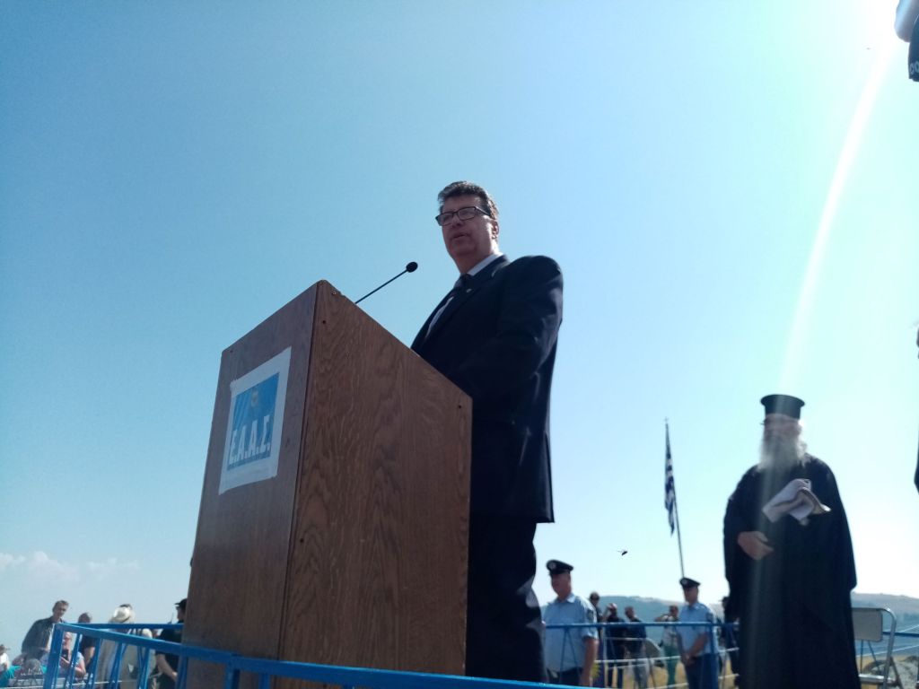 Λίγο αργότερα, από το βήμα των ομιλητών χαιρέτισε την επετειακή εκδήλωση ο Προέδρος της Ένωσης Αποστράτων Αξιωματικών Αεροπορίας (Ε.Α.Α.Α.) Αντιπτεράρχος (Ι) ε.α. κ. Κωνσταντίνος Τζαβέλλας επισημαίνοντας την συμβολή της Πολεμικής Αεροπορίας στις ανάγκες των τότε επιχειρήσεων. Σημειώνεται πως ένα μεγάλο μέρος της ελληνικής κοινωνίας δεν γνωρίζει πως συμμετείχε ενεργά και η Πολεμική Αεροπορία στους αγώνες που έλαβαν χώρα εκείνη την εποχή και πολλοί νομίζουν ότι μεμονωμένα έδρασε ο Εθνικός Στρατός.