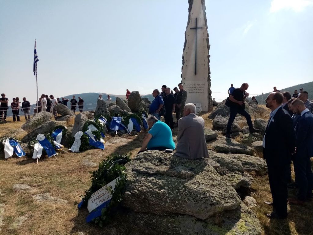 Με το πέρας της τελετής, περπατήσαμε το χωμάτινο μονοπάτι προς το Μνημείο. Ακούγονταν εμβατήρια κυρίως μακεδονικά. Όταν φτάσαμε ήδη βρισκόταν στο Μνημείο ο Πρόεδρος της ΕΑΑΣ Υποστράτηγος ε.α. κ. Ιωάννης Δεβούρος, ο Διευθύνων Σύμβουλος Συνταγματάρχης ε.α. κ. Χρήστος Χρηστίδης, ο Υποστράτηγος ε.α. κ. Χρήστος Μπολώσης, ο Υπεύθυνος Δημοσίων Σχέσεων της ΕΑΑΣ Αντιστράτηγος ε.α. κ. Χαράλαμπος Πόκας και λοιπά μέλη της Ενώσεως. Επίσης, μαζί τους ήταν ο Προέδρος του Παραρτήματος της ΕΑΑΣ Νομού Καστοριάς Συνταγματάρχης ε.α. κ. Χρυσόστομος Δούκης, ο τέως Πρόεδρος του ανωτέρω παραρτήματος Υποστράτηγος ε.α. κ. Ηλίας Τζωρτζόπουλος, ο Προέδρος της Ένωσης Αποστράτων Αξιωματικών Αεροπορίας (Ε.Α.Α.Α.) Αντιπτεράρχος (Ι) ε.α. κ. Κωνσταντίνος Τζαβέλλας και άλλοι απόστρατοι Αξιωματικοί του Ελληνικού Στρατού, Αξιωματικοί της Ελληνικής Αστυνομίας, εκπρόσωποι και παράγοντες των Τοπικών και Εκκλησιαστικών Αρχών, μέλη Συνδέσμων Εφέδρων και πατριωτικών οργανώσεων.