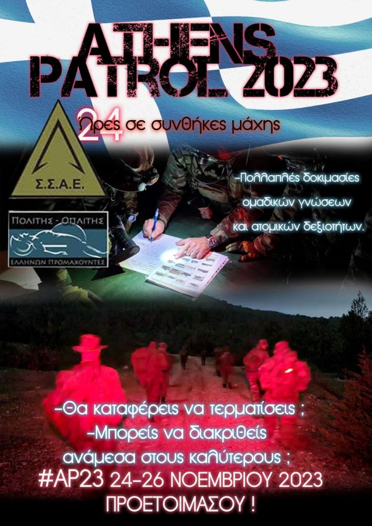 Ο Πανελλήνιος Αγώνας – Άσκηση Εθελοντών Εφέδρων “Athens Patrol” έρχεται με…φόρα για 9η φορά στην Αττική με διοργανωτή τον γνωστό και δυναμικό Σύλλογο Στρατιωτικού Αθλητισμού Εφέδρων – Σ.Σ.Α.Ε στις 24-26 Νοεμβρίου 2023.