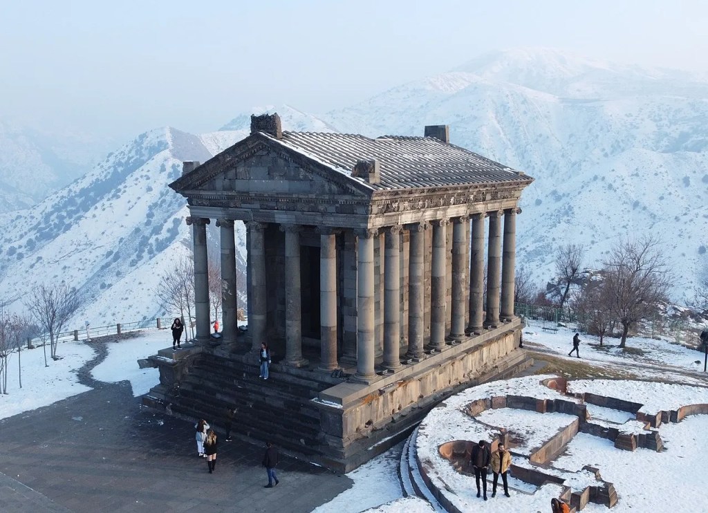 Ο ελληνιστικός ναός του Γκαρνί. Χτίστηκε πιθανότατα από τον βασιλιά Τιριδάτη Α΄ στον πρώτο αιώνα μ.Χ. ως ναός του θεού Ήλιου Μιχρ. Ο ναός βρίσκεται στην άκρη ενός τριγωνικού γκρεμού και είναι μέρος του φρουρίου της Γκαρνί, από τα παλαιότερα κάστρα στην Αρμενία (πηγή wikipedia/Yerevantsi).