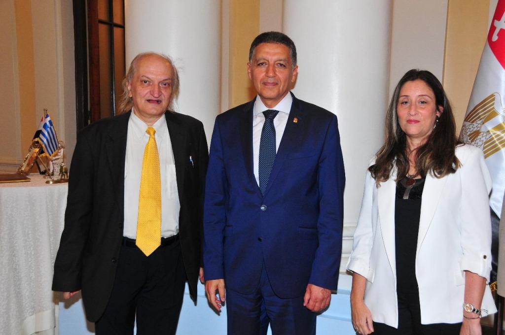 Στην φωτογραφία από την εκδήλωση εικονίζεται το πρεσβευτικό ζεύγος της Αιγύπτου με τον Δρα Αθανάσιο Δρούγο, Διεθνολόγο και Γεωστρατηγικό Αναλυτή.
