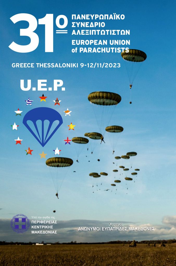 H καρδιά του Ευρωπαϊκού Αλεξιπτωτισμού θα χτυπά από αύριο Πέμπτη 9 έως και την Κυριακή 12 Νοεμβρίου 2023 στην Θεσσαλονίκη όπου η Πανελλήνια Ομοσπονδία Ειδικών Δυνάμεων υποδέχεται τους πιο γνωστούς παράγοντες της U.E.P. της Ένωσης Ευρωπαίων Αλεξιπτωτιστών στο πλαίσιο της διεξαγωγής του 31ου Συνεδρίου των Ευρωπαίων Αλεξιπτωτιστών.