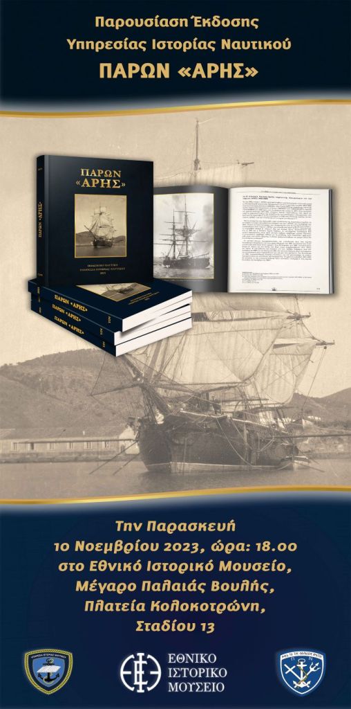 Μια ενδιαφέρουσα παρουσίαση βιβλίου θα λάβει χώρα αύριο το απόγευμα στο κέντρο της Αθήνας για τους φίλους του Πολεμικού Ναυτικού και της Ναυτικής Ιστορίας. Η έκδοση της Υπηρεσίας Ιστορίας Ναυτικού – ΥΙΝ, με τίτλο «Πάρων Άρης» θα παρουσιαστεί αύριο Παρασκευή 10 Νοεμβρίου 2023 (ώρα 18.00) στο Εθνικό και Ιστορικό Μουσείο, Μέγαρο Παλαιάς Βουλής, Πλατεία Κολοκοτρώνη, οδός Σταδίου 13.