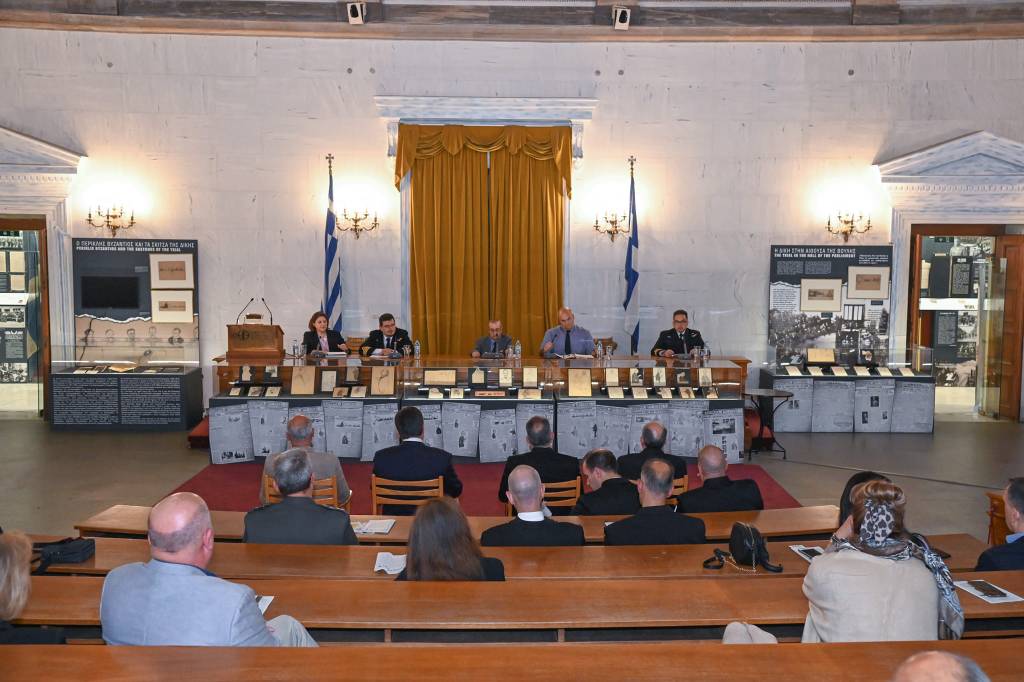 Την εκδήλωση χαιρέτισαν ο Αρχηγός Γενικού Επιτελείου Ναυτικού Αντιναύαρχος Ιωάννης Δρυμούσης ΠΝ, ο Διευθυντής της Υπηρεσίας Ιστορίας Ναυτικού Αρχιπλοίαρχος Ιωάννης Καμπόλης ΠΝ και ο Επίτιμος Αρχηγός Στόλου Αντιναύαρχος Κωνσταντίνος Μαζαράκης-Αινιάν ως μέλος του Διοικητικού Συμβουλίου της Ιστορικής και Εθνολογικής Εταιρείας της Ελλάδος.