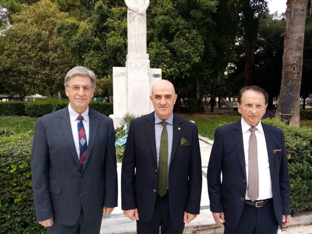 φωτ. Οι Πρόεδροι των Ενώσεων Αποστράτων Αξιωματικών Πατρών, στο κέντρο ο κ. Κωνσταντίνος Νάκας – ΕΑΑ Στρατού, στα αριστερά του ο κ. Βασίλειος Χρόνης – ΕΑΑ Αεροπορίας και δεξιά του ο κ. Δημήτριος Μποϊλές – ΕΑΑ Ναυτικού