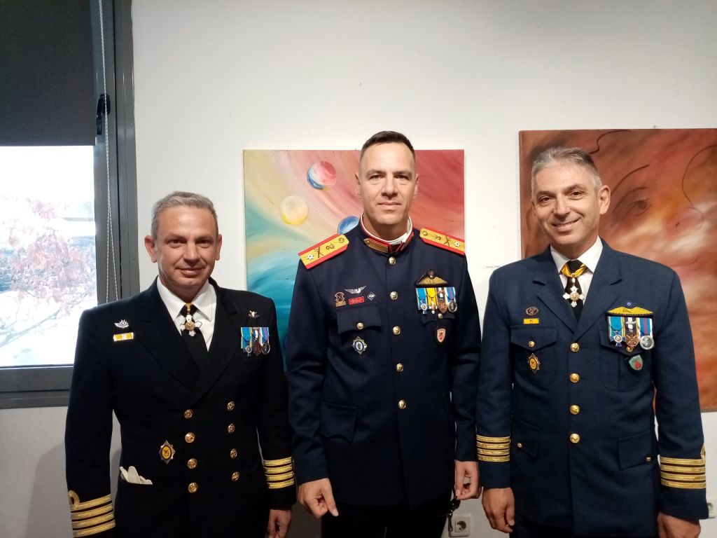 φωτ. στο κέντρο, ο Ταξίαρχος Τούντας Ευάγγελος Διοικητής του Κέντρου Εκπαιδεύσεως Τεχνικού Πατρών (ΚΕΤΧ), αριστερά του, ο Σμήναρχος (Ι) Μπεκιαρόπουλος Παντελής Διοικητής 116 Πτέρυγας Μάχης, και δεξιά, ο Πλοίαρχος Π.Ν. Ράπτης Βασίλειος Διοικητής Ναυτικού Σταθμού Ιονίου