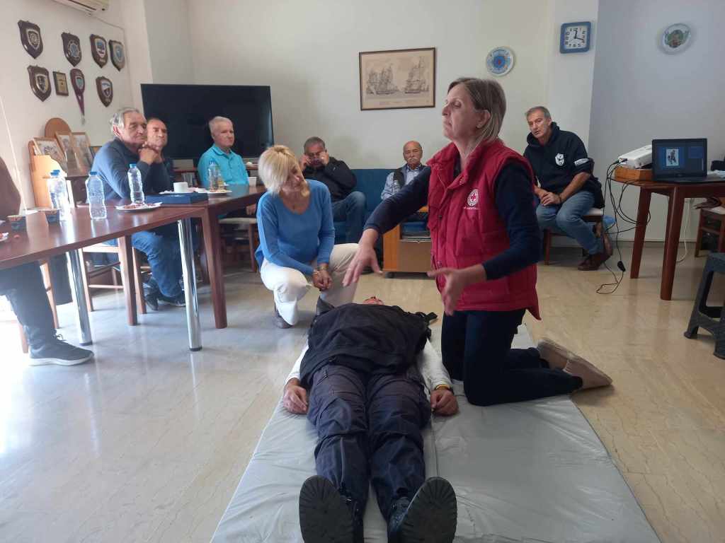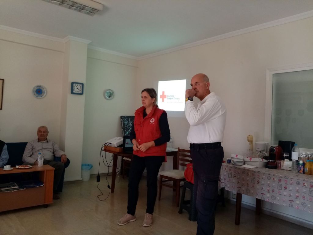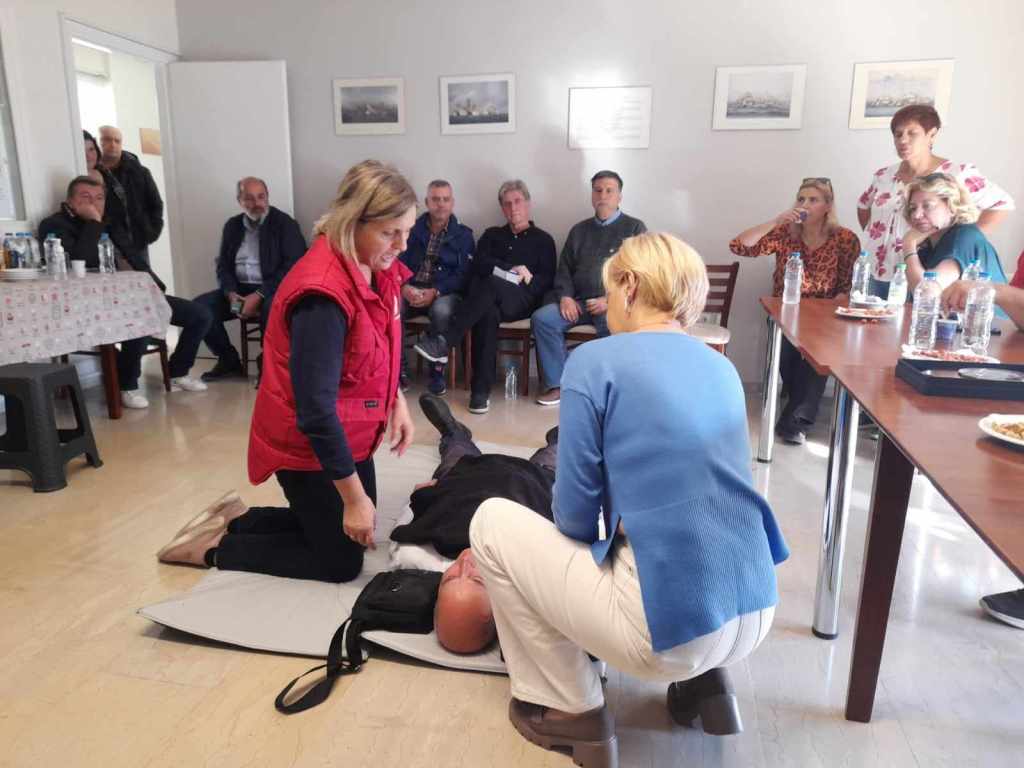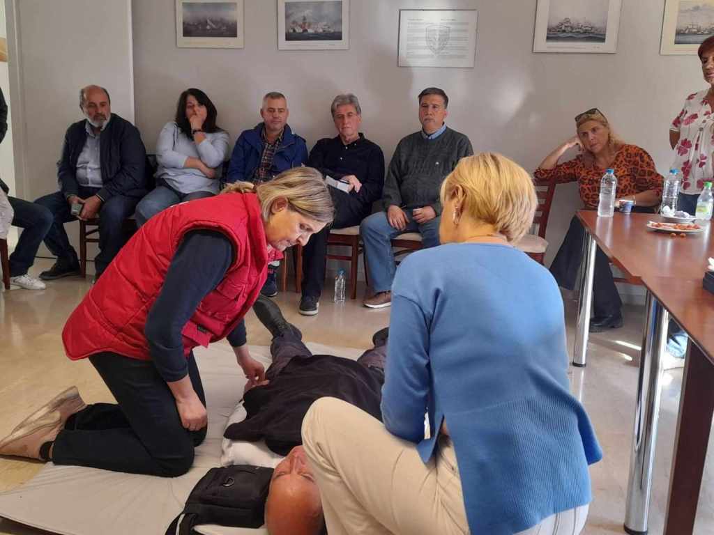 Η κα Τάνια Κανελλοπούλου Πρόεδρος του πατραϊκού τμήματος του Ελληνικού Ερυθρού Σταυρού, η κα Μαρία Σύρακα νοσηλεύτρια – εκπαιδεύτρια, Προϊσταμένη της Νοσηλευτικής Υπηρεσίας του ανωτέρω τμήματος του ΕΕΣ και ο κ. Αθανάσιος Βακαλόπουλος εθελοντής ΕΕΣ Πάτρας επιμελήθηκαν την εκμάθηση των παρισταμένων με την βοήθεια βιντεοπροβολής αλλά και εθελοντών, στην άκρως απαραίτητη και που πρέπει να γνωρίζουμε όλοι παροχή α’ βοηθειών στην καθημερινότητά μας.