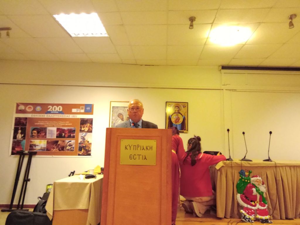 φωτ. Ο Πρόεδρος της Ένωσης Κυπρίων Ελλάδος κ. Λεωνίδας Μασσοστασής στο βήμα των ομιλητών