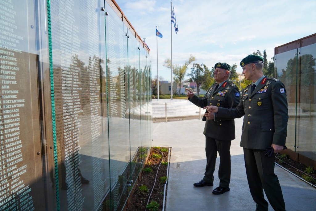 Οι 2 Αρχηγοί περιηγήθηκαν στις περίοπτες επιτύμβιες στήλες του Μνημείου, όπου αναγράφονται και τα ονόματα των 53 Ελλήνων Κυπριακής καταγωγής που στελέχωσαν τον Ελληνικό Στρατό στους αγώνες του Έθνους πριν το 1974, καθώς και των Ελλαδιτών από την τουρκική εισβολή του 1974.
