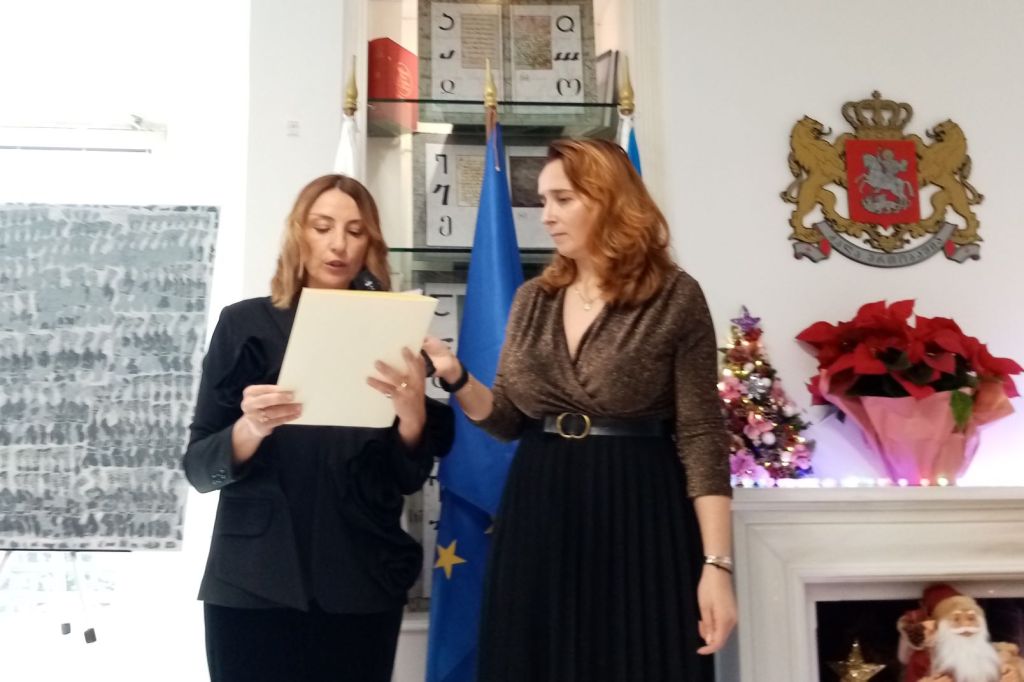 Για εμάς που είχαμε την τύχη να γνωρίζουμε από κοντά το τιμώμενο πρόσωπο, την υπέροχη κυρία Darejan Mumladge, την Dea όπως την λέμε, την επίσης υπέροχη κυρία Ani Udzilauri Αρμόδια επί Πολιτιστικών Θεμάτων αλλά και όλο το ευγενέστατο προσωπικό της Πρεσβείας, με τους οποίους αν και συστηθήκαμε στο πλαίσιο του ρεπορτάζ, έχουμε συνδεθεί πια και φιλικά, η εκδήλωση αποτέλεσε ένα κράμα χαράς λόγω του εορταστικού κλίματος των ημερών αλλά και στενοχώριας που θα αποχαιρετούσαμε την αγαπητή, διακεκριμένη και γλυκύτατη Διπλωμάτη για την επιστροφή της στην Γεωργία.