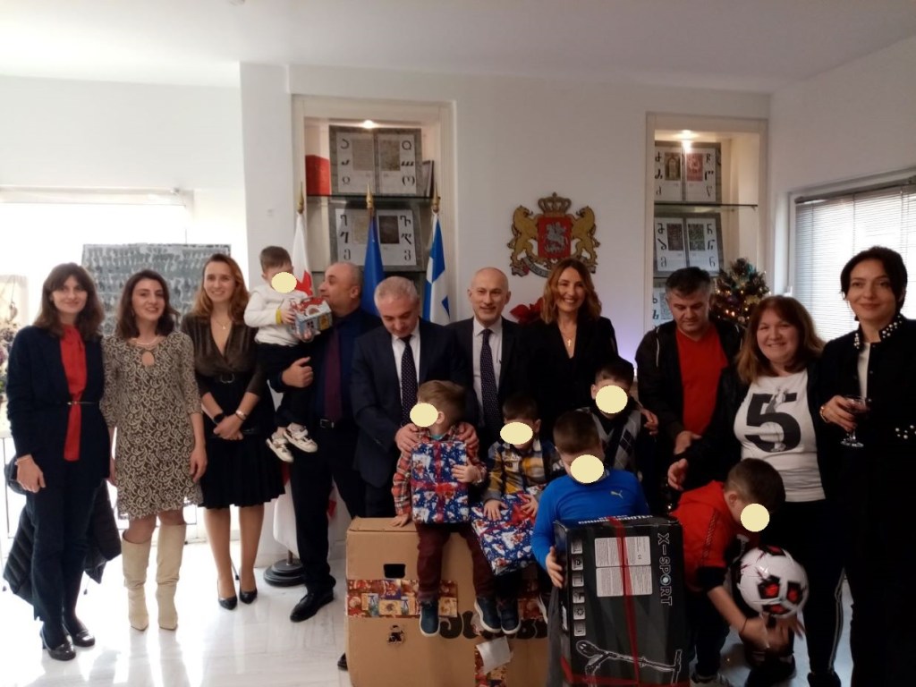 Ακολούθησε διανομή χριστουγεννιάτικων δώρων σε παιδάκια της Γεωργιανής Διασποράς και αμέσως μετά, δεξίωση με υπέροχες γεωργιανές λιχουδιές και εύγεστα κρασιά από παραδοσιακές οινοποιίες της Γεωργίας.