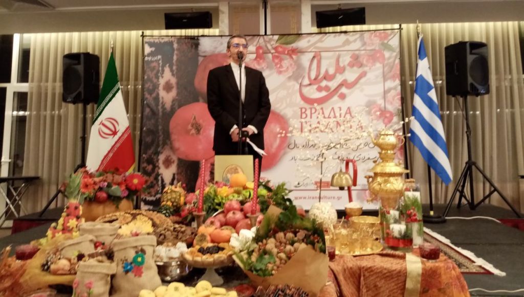 Η εκδήλωση ξεκίνησε με ένα σύντομο χαιρετισμό από τον Μορφωτικό Ακόλουθο της Ιρανικής Πρεσβείας Δρ. Mahdi Nik Khah Ghomi και εν συνεχεία ο πάντα ευγενικός Πρέσβης του Ιράν κ. Malek Hossein Givzad καλωσόρισε τους προσκεκλημένους στην βραδιά Γιαλντά.
