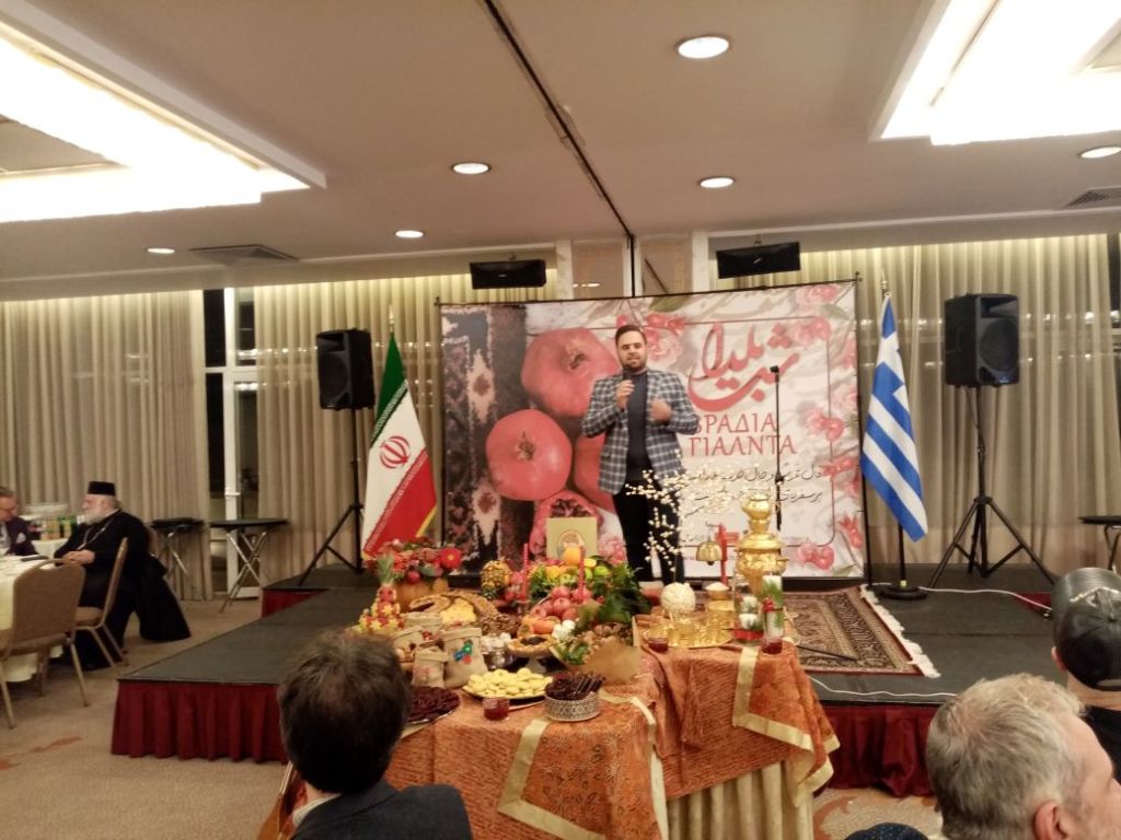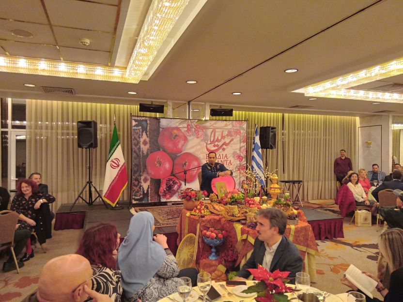 Η εορταστική βραδιά που είχε διοργανώσει την Πέμπτη 21 Δεκεμβρίου 2023 σε κεντρικό αθηναϊκό ξενοδοχείο η Πρεσβεία της Ισλαμικής Δημοκρατίας του Ιράν πήρε άριστα με τόνο όπως όλες άλλωστε οι γιορτές που ετοιμάζει για τους Έλληνες φίλους της. Κατά την είσοδό μας στον χώρο της εκδήλωσης, θαυμάσαμε τα σπουδαιότερα αξιοθέατα του Ιράν σε φωτογραφική έκθεση μαζί με παραδοσιακά αντικείμενα της ιρανικής κουλτούρας. Μάλιστα, για το καλό της εορταστικής βραδιάς το προσωπικό της Πρεσβείας μας διένειμε λαχνούς για κλήρωση που θα ελάμβανε χώρα αργότερα με ωραία δώρα.