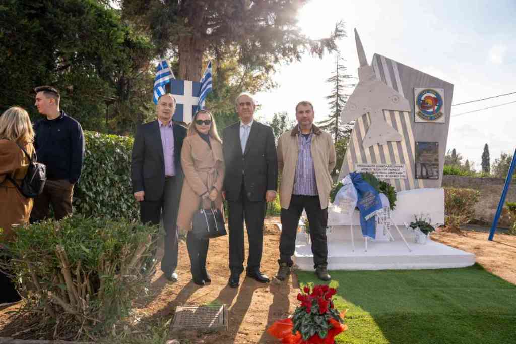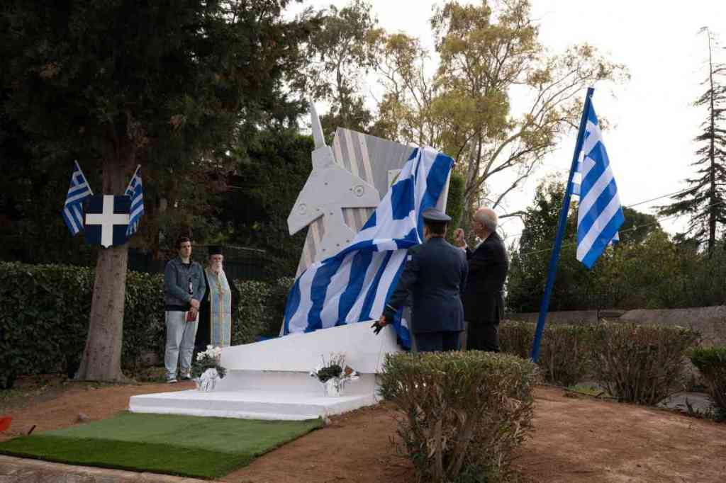 Τα αποκαλυπτήρια του Μνημείου πραγματοποίησαν ο Δήμαρχος Κηφισιάς Γιώργος Θωμάκος και ο Ταξίαρχος (Ι)- Διοικητής της Σχολής Πολέμου Πολεμικής Αεροπορίας Σπυρίδων Αρβανιτάκης, ο οποίος εκπροσώπησε στην εκδήλωση τον Αρχηγό ΓΕΕΘΑ και τον Αρχηγό ΓΕΑ.