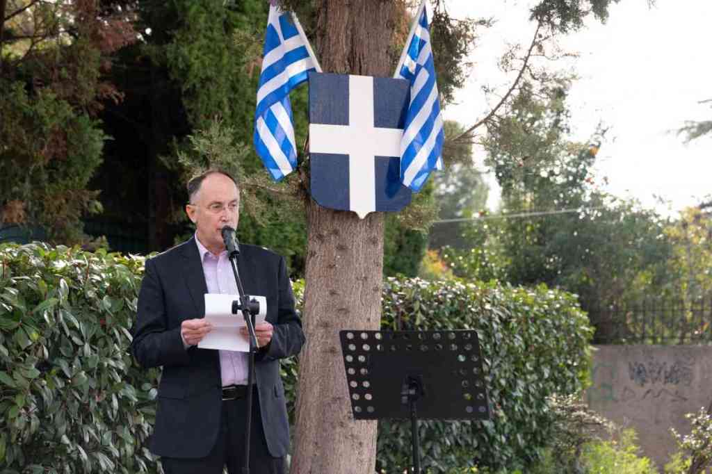 Στεφάνια κατέθεσαν ο Δήμαρχος Κηφισιάς Γιώργος Θωμάκος και η Πρόεδρος του Πανελληνίου Συνδέσμου Οικογενειών Πεσόντων Αεροπόρων (ΠΑΣΟΙΠΑ) Ποθητή Σκαμαγκούλη.