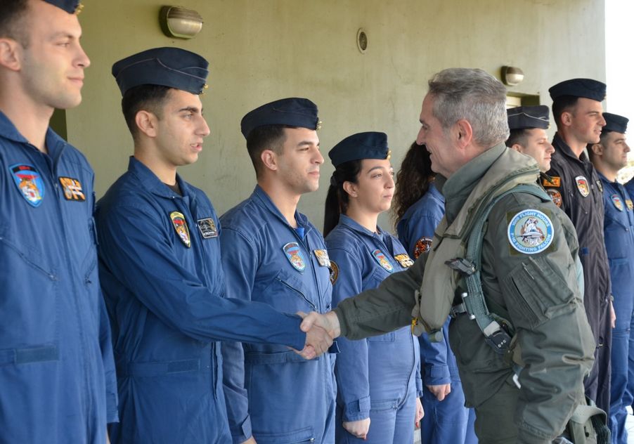 Κατά τη διάρκεια της επίσκεψής του, ο Αρχηγός ΤΑ, συνομίλησε και αντάλλαξε ευχές με το προσωπικό της Μονάδας, καθώς και με τους Ιπταμένους και Τεχνικούς των αεροσκαφών επιφυλακής.