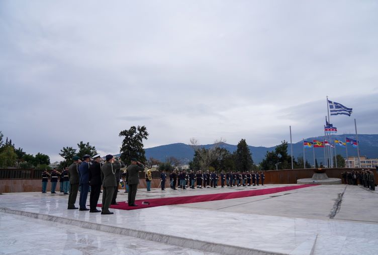 Εν συνεχεία πραγματοποιήθηκε κατάθεση στεφάνου στο Μνημείο των Αθανάτων του Έθνους από τον απερχόμενο Αρχηγό και ακολούθησε ενημέρωση του νέου Αρχηγού.