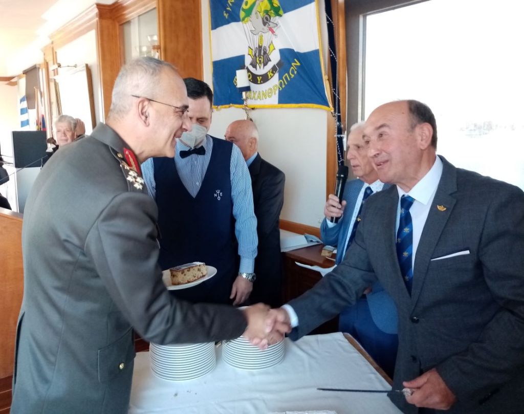φωτ.ο Αρχηγός ΓΕΕΘΑ Στρατηγός Δημήτριος Χούπης παραλαμβάνει τη βασιλόπιτα από τον Πρόεδρο του Συνδέσμου Ελλήνων Βατραχανθρώπων Αλέξανδρο Παλατιανό