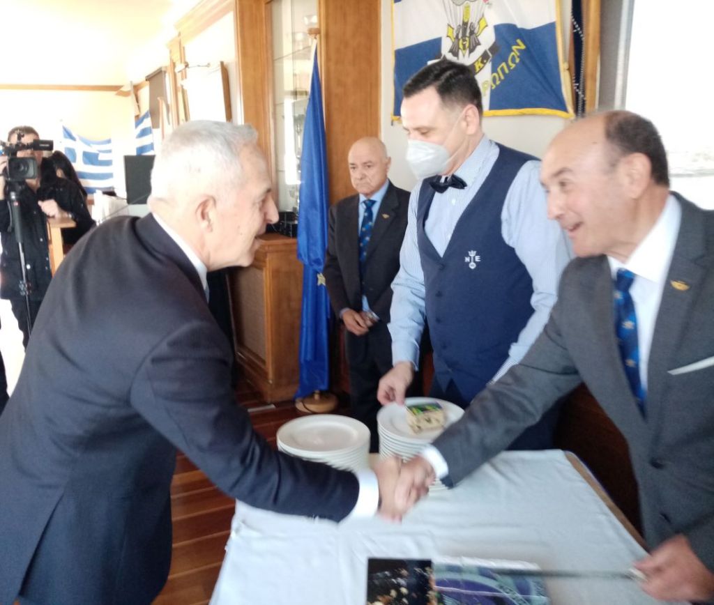 φωτ.Ο π. Υπουργός Εθνικής Άμυνας, Ναύαρχος ε.α. Ευάγγελος Αποστολάκης παραλαμβάνει την βασιλόπιτα από τον Πρόεδρο του Συνδέσμου Ελλήνων Βατραχανθρώπων Αλέξανδρο Παλατιανό