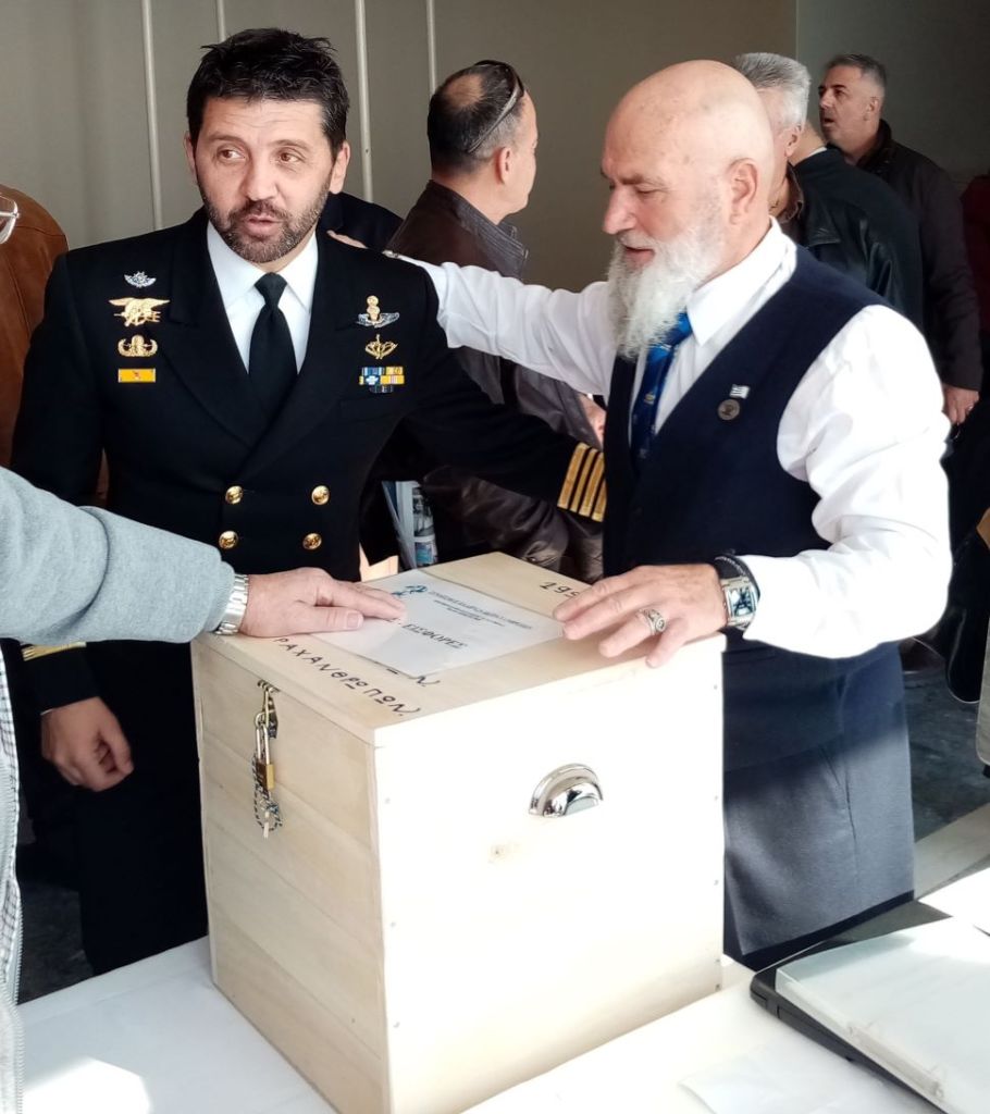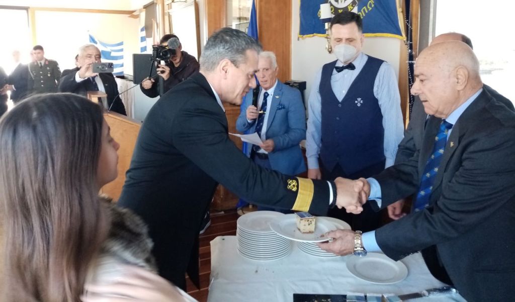φωτ.Ο Διοικητής της Μονάδας Υποβρυχίων Αποστολών Λιμενικού Σώματος – Ελληνικής Ακτοφυλακής Ιωάννης Παπαδάκης παραλαμβάνει την βασιλόπιτα