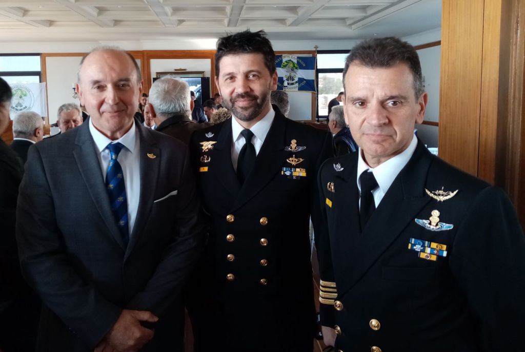 φωτ.Από δεξιά τω βλέποντι, ο Διοικητής της Διοίκησης Υποβρυχίων Καταστροφών Πλοίαρχος Απόστολος Γαβριελάτος, στο κέντρο, ο Διοικητής της Σχολής Υποβρυχίων Καταστροφών Αντιπλοίαρχος Ιωάννης Νεράκης και αριστερά τω βλέποντι, ο Πρόεδρος του Συνδέσμου Ελλήνων Βατραχανθρώπων Αρχιπλοίαρχος ε.α. Αλέξανδρος Παλατιανός